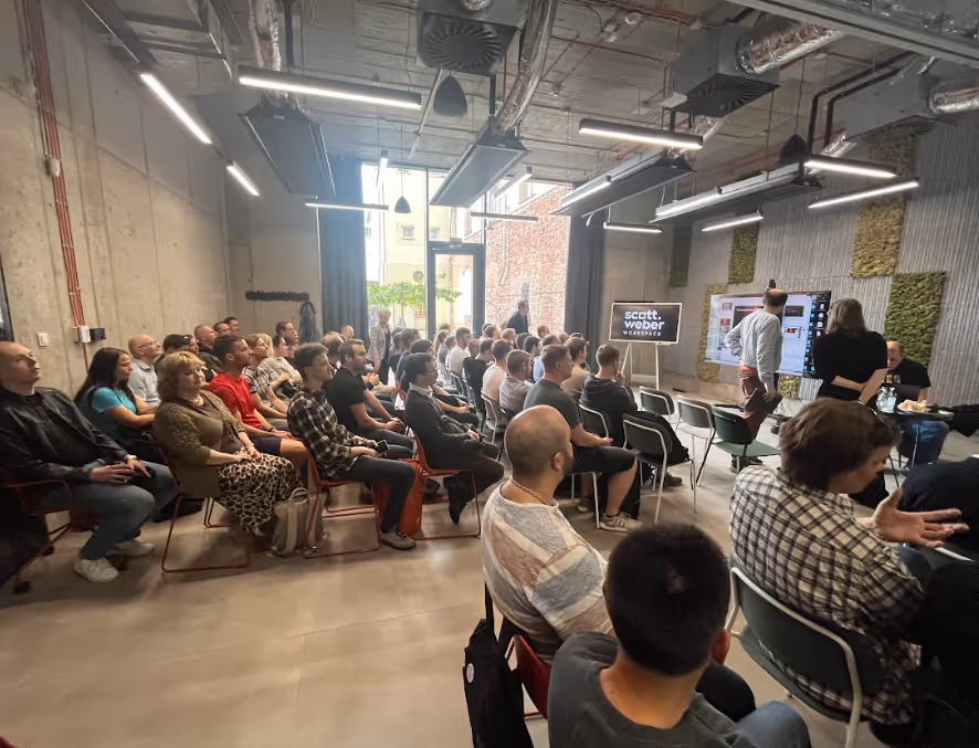Tentokrát jsme se potkali v moderních prostorách Scott Weber v Karlíně, kde jsme pro naše lidi uspořádali konferenci na téma umělé inteligence.